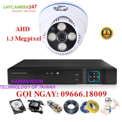 Trọn bộ 1 camera KAWAVISION dome hồng ngoại 1.3 MP