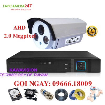 Trọn bộ 1 camera KAWAVISION thân hồng ngoại 2.0 MP