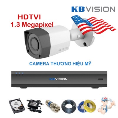 Trọn bộ camera thân KBVISION 1.3 Megapixel thương hiệu Mỹ, với cảm biến hình ảnh 1.3 Megapixel độ phân giải HD 960P tầm nhìn hồng ngoại 20m, tiêu chuẩn chống nước và bụi tuyệt vời. Thích hợp lắp đặt camera ngoài trời nhà xưởng, bệnh viện, trường học,...
